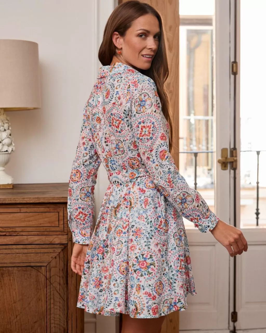 Vestido corto camisero con estampado floral sobre un fondo blanco. Vestido con cuello de camisa. Manga larga con el final en puño. En la cintura cuenta con un elástico y viene acompañado de un cinturón a juego. Hilera de botones desde el cuello hasta el bajo. Falda corta, con abertura central. Vestido ideal para la lactancia. Ver másVer menos Referencia 180262 COMPOSICIÓN Y MEDIDAS:100% algodónLeti mide 1,74 cm y lleva talla S. Si dudas con la talla te recomendamos usar el recomendador de tallas online.CUIDADOS:Lavar a mano máximo a 30º. Ficha técnica Colores BLANCOS Etiquetas: CHA 3120221 – ENVÍOS, CAMBIOS Y DEVOLUCIONES Favorito55 ENVÍOS:Todos los envíos cuentan con gastos de envío, que dependen de la dirección de entrega.• Península y Portugal: 3,50€ | 2-4 días laborables.• Baleares: 6,50€ | Hasta 7 días laborables.• Países de la Unión Europea: 10,95€ | Hasta 10 días laborables.• Envíos a Europa (No UE): 15,95€ | Hasta 10 días laborables.• Resto del mundo*: Aprox 10€ | Hasta 15 días laborables.*NO hacemos envíos a Canarias, Ceuta, Melilla, Afganistán, Bielorusia, Congo, Bali, Myanmar, Nigeria, Rusia, Senegal, Somalia y Ucrania.¡Importante! En periodo de rebajas, los pedidos pueden tardar un poco más de lo habitual ¡Rogamos paciencia!CAMBIOS: ¡El envío con el cambio solicitado es gratuito!Pedidos realizados desde España:Plazo de 14 días laborables desde que recibes el paquete en casa.Pedidos realizados desde fuera de España:Plazo de 20 días naturales desde que realizamos el envío.*La gestión del envío del paquete de vuelta a nuestro almacén corre a cuenta del cliente, haciéndose cargo de los costes de este envío, mediante el courier de su elección o con nuestro servicio de DHL.En el primer trámite de cambio, el envío de vuelta es gratuito (tanto de talla como de producto). Permitimos DOS trámites de cambio, en caso de querer tramitar un segundo cambio, se descontarán los gastos de envío según destino.Una vez recibido el paquete en nuestro almacén, tramitaremos tu cambio en un plazo máximo de hasta 10 días laborables. Recibirás un correo de confirmación cuando este pedido de cambio esté listo para ser enviado.